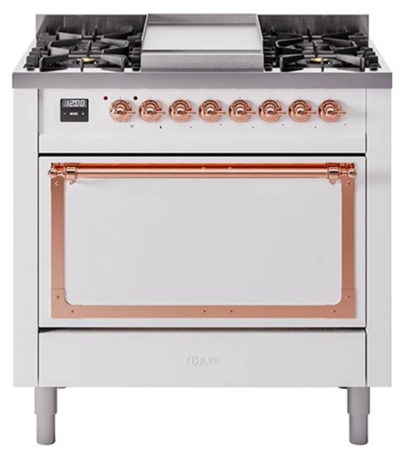 Introducing the new Nostalgie II 36" dual fuel range, a classic addition with a touch of innovation to any kitchen. This range feature sealed burners equipped with total black brass burner that has a non-stick nanotechnological coating, heavy cast iron grates, 3.5 cu. ft. total oven capacity and soft closing door system.Read More