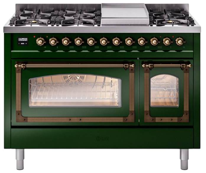 Introducing the new Nostalgie II 48" dual fuel range, a classic addition with a touch of innovation to any kitchen. This range feature sealed burners equipped with total black brass burner that has a non-stick nanotechnological coating, heavy cast iron grates, 3.5 + 1.52 cu. ft. total double oven capacity and soft closing door system.Read More