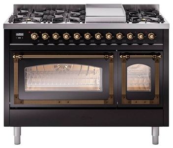 Introducing the new Nostalgie II 48″ dual fuel range, a classic addition with a touch of innovation to any kitchen. This range feature sealed burners equipped with total black brass burner that has a non-stick nanotechnological coating, heavy cast iron grates, 3.5 + 1.52 cu. ft. total double oven capacity and soft closing door system.Read More