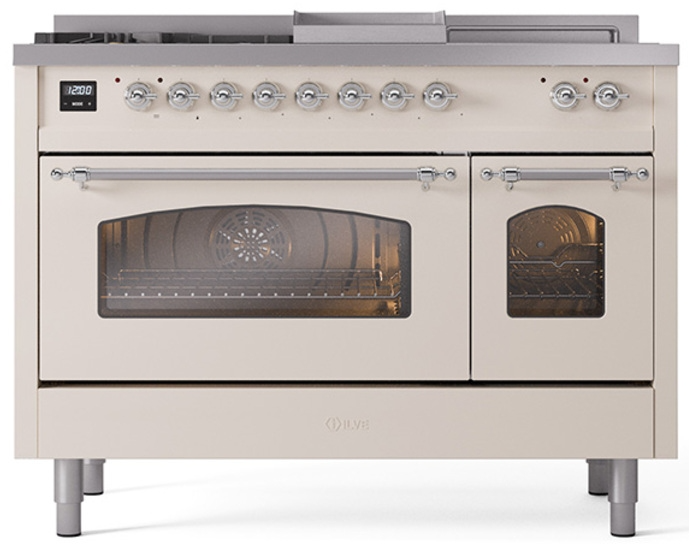 Introducing the new Nostalgie II 48" dual fuel range, a classic addition with a touch of innovation to any kitchen. This range feature sealed burners equipped with total black brass flame spreader that has a non-stick nanotechnological coating, heavy cast iron grates, 3.5 + 1.52 cu. ft. total double oven capacity and soft closing door system.Read More