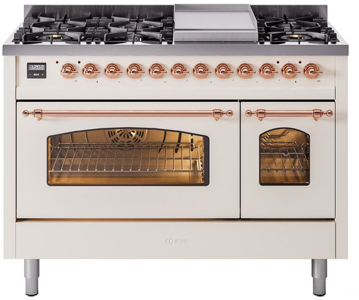 Introducing the new Nostalgie II 48" dual fuel range, a classic addition with a touch of innovation to any kitchen. This range feature sealed burners equipped with total black brass flame spreader that has a non-stick nanotechnological coating, heavy cast iron grates, 3.5 + 1.52 cu. ft. total double oven capacity and soft closing door…Read More