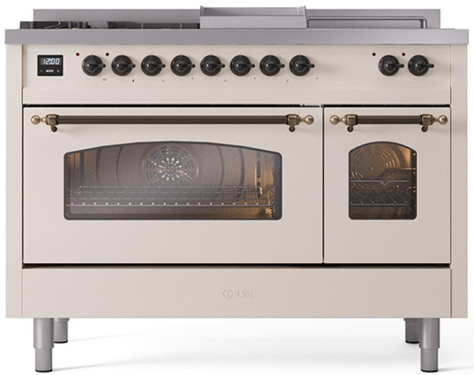 Introducing the new Nostalgie II 48" dual fuel range, a classic addition with a touch of innovation to any kitchen. This range feature sealed burners equipped with total black brass flame spreader that has a non-stick nanotechnological coating, heavy cast iron grates, 3.5 + 1.52 cu. ft. total double oven capacity and soft closing door system.Read More