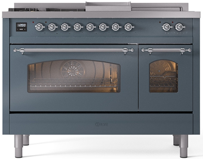 Introducing the new Nostalgie II 48" dual fuel range, a classic addition with a touch of innovation to any kitchen. This range feature sealed burners equipped with total black brass flame spreader that has a non-stick nanotechnological coating, heavy cast iron grates, 3.5 + 1.52 cu. ft. total double oven capacity and soft closing door system.Read More