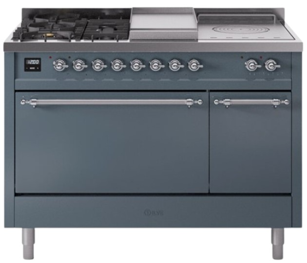 Introducing the new Nostalgie II 48" dual fuel range, a classic addition with a touch of innovation to any kitchen. This range feature sealed burners equipped with total black brass flame spreader that has a non-stick nanotechnological coating, heavy cast iron grates, 3.5 + 1.52 cu. ft. total double oven capacity and soft closing door system.Read More