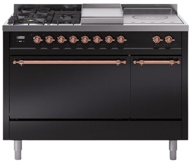 Introducing the new Nostalgie II 48" dual fuel range, a classic addition with a touch of innovation to any kitchen. This range feature sealed burners equipped with total black brass flame spreader that has a non-stick nanotechnological coating, heavy cast iron grates, 3.5 + 1.52 cu. ft. total double oven capacity and soft closing door system.Read More
