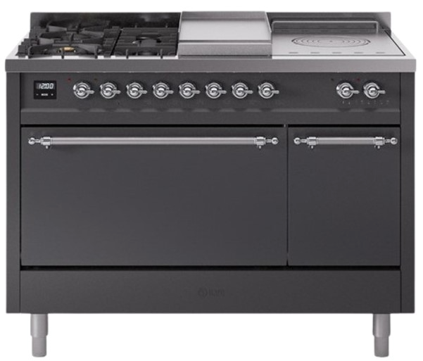 Introducing the new Nostalgie II 48" dual fuel range, a classic addition with a touch of innovation to any kitchen. This range feature sealed burners equipped with total black brass flame spreader that has a non-stick nanotechnological coating, heavy cast iron grates, 3.5 + 1.52 cu. ft. total double oven capacity and soft closing door system.Read More