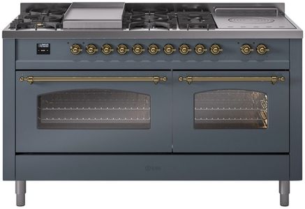 Introducing the new Nostalgie II 60" dual fuel range, a classic addition with a touch of innovation to any kitchen. This range feature sealed burners equipped with total black brass flame spreader that has a non-stick nanotechnological coating, heavy cast iron grates, 3.5 + 2.3 cu. ft. dual oven capacity and soft closing door system.Read More