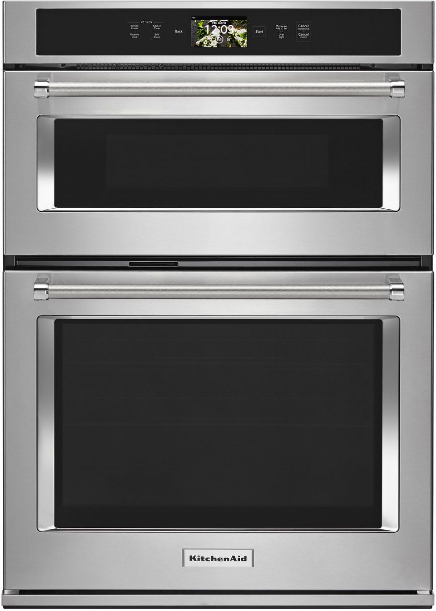 Open up new culinary possibilities. KitchenAid introduces the first combination wall oven that comes with interchangeable attachments in the tradition of the iconic KitchenAid® Stand Mixer to enable grilling, stone cooking and steaming. As cooks expect today from a premium wall oven, it also supports a full complement of smart capabilities as well as baking, broiling and Even-Heat™ True Convection.Read More