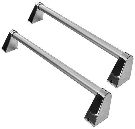 KitchenAid Commercial Range 48" Handle Kit is inspired by professional kitchens. The sturdy bar handle shape, sleek chrome caps, and easy-to-clean satin cross-hatch texture combine high-style with a secure grip. The handle creates a beautifully finished transition by adding a chrome accent between glass and brushed metal surfaces.